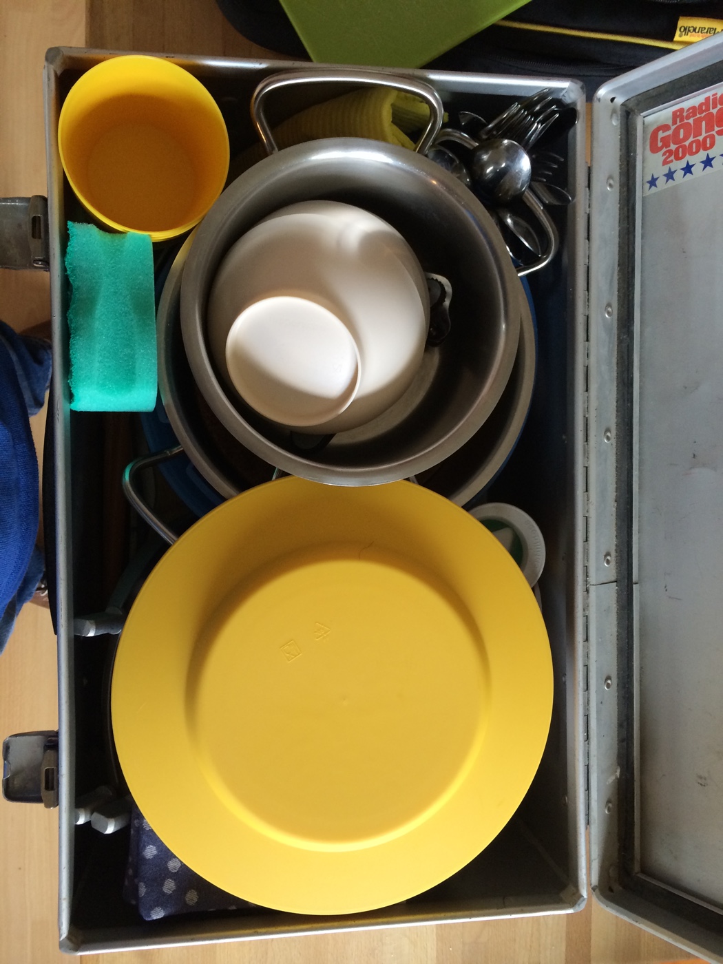 Wir haben (für uns unüblich) einen Koffer gepackt. Irgendwo mussten die Küchenutensilien ja hin. Ausgestattet mit zwei einzelnen Gasbrennern (die auf die gleiche (wechselbare) Kartusche setzen, von denen einer als Grill fungieren kann) und einem klaren Verzicht auf zu viel Küchenequipment ging es an den Start. Unser Küchenkoffer war spartanisch aber eben perfekt für uns.