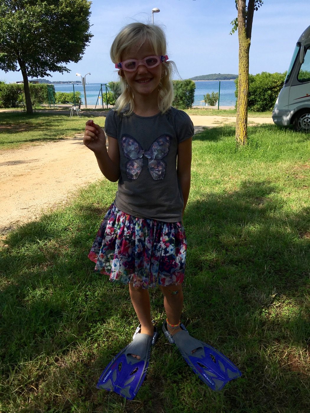 In Fažana suchen und finden wir einen Campingplatz. Auch wenn die angekündigte Poollandschaft etwas enttäuscht, sind die Küste (mit den vorgelagerten Inseln), das kleine Städtchen und das Meer ein Volltreffer.