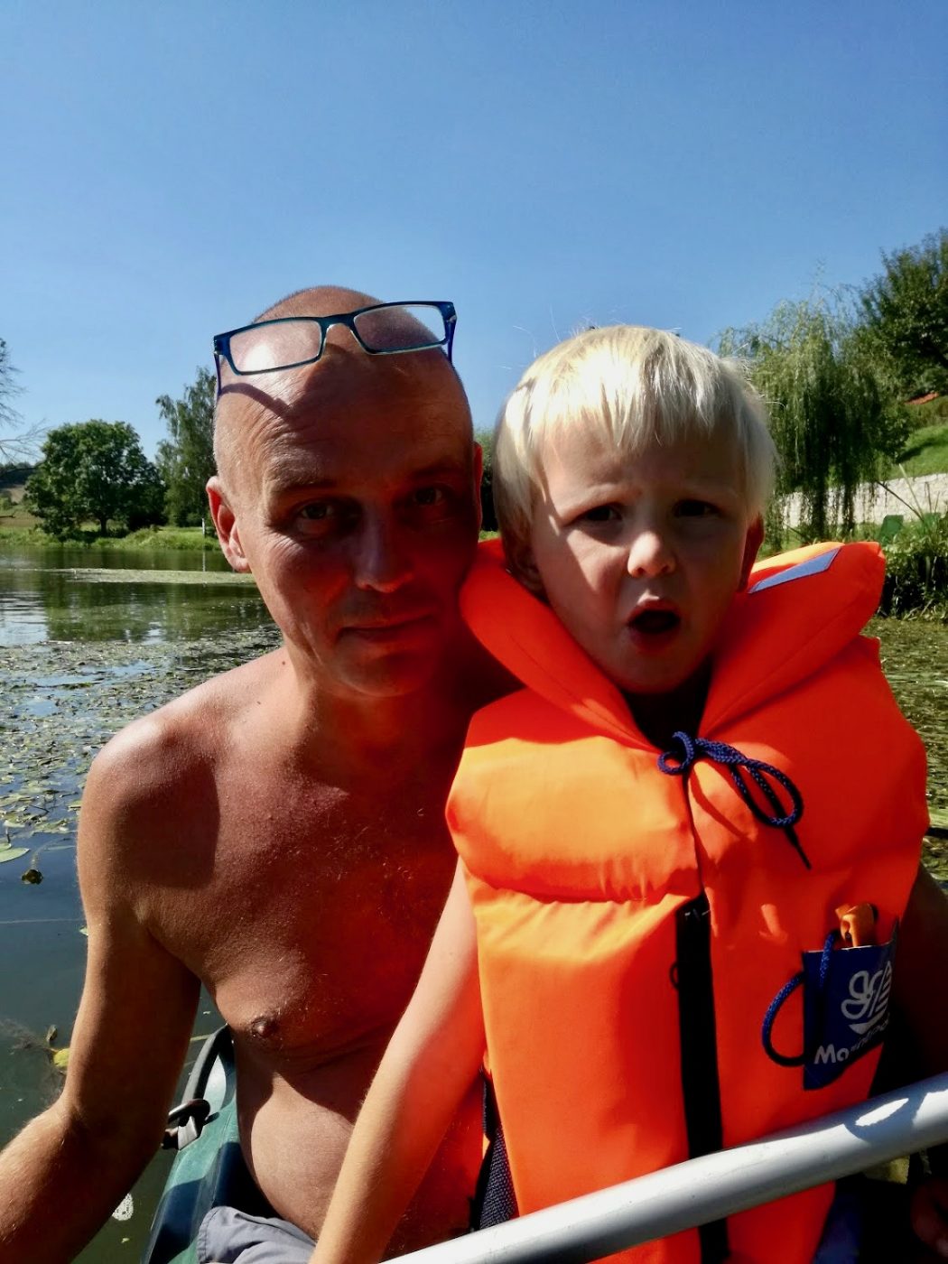 Los ging es aber wirklich mit einem Ausflug nach Schwaben: Schlauchboot und Kinder in das italienische Auto ohne Dachgepäckträger gepackt und rein ins Wasser: